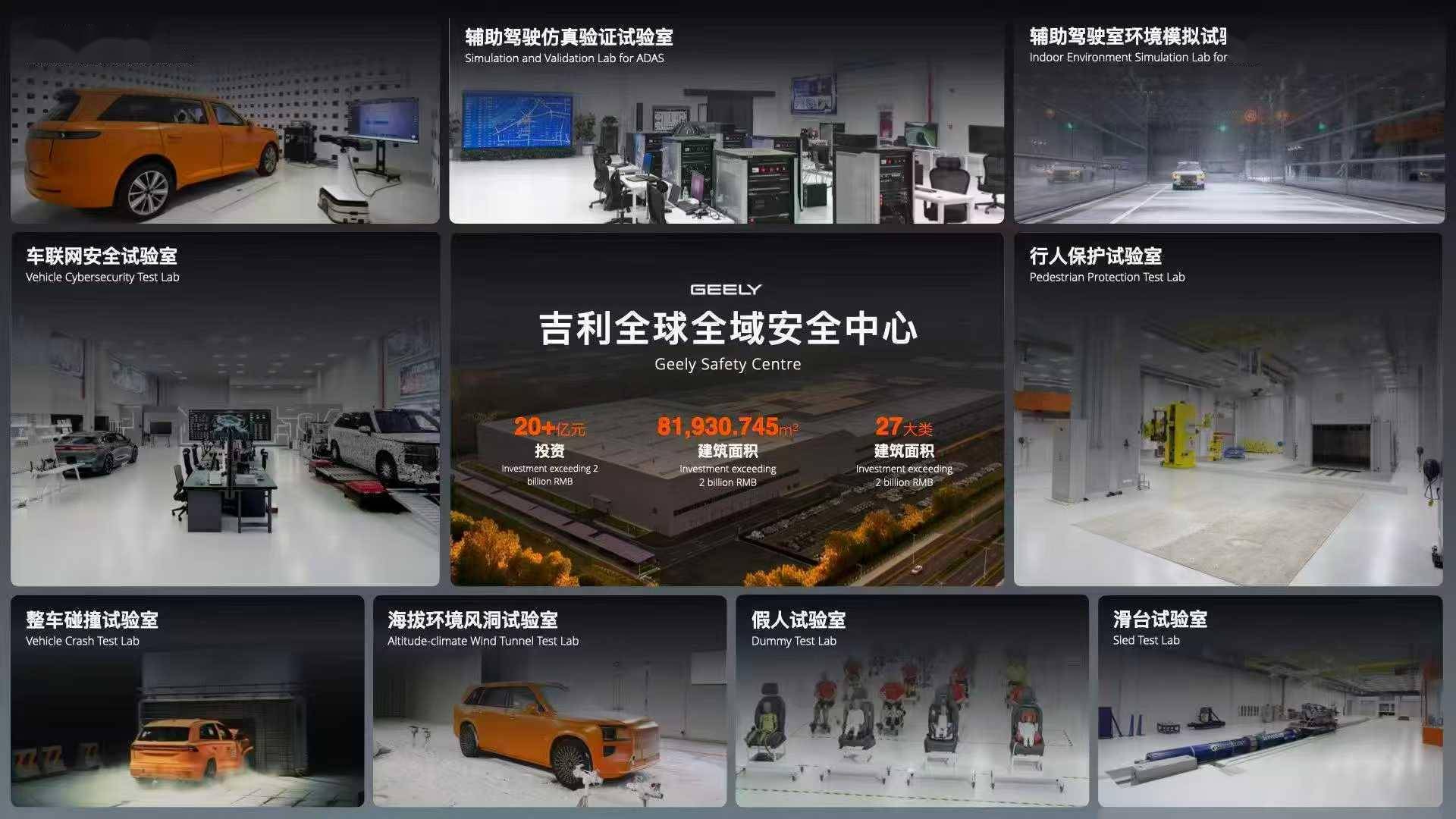 值得一提的是,吉利全球全域安全中心已于此前正式发布。该中心投资超20亿元,规模宏大,号称“全球最大、功能最全”。其占地面积超8万平方米,具备27大类测试能力,可覆盖全域安全技术验证,并且面向全行业开放共享,为汽车安全技术的发展提供了有力支持。